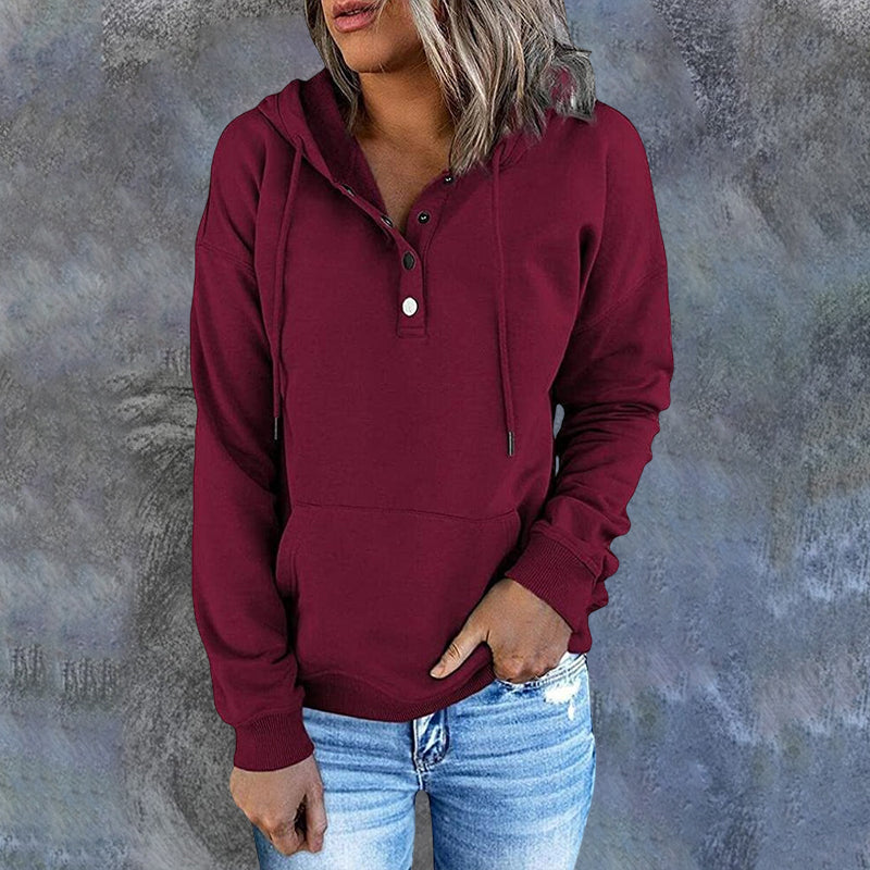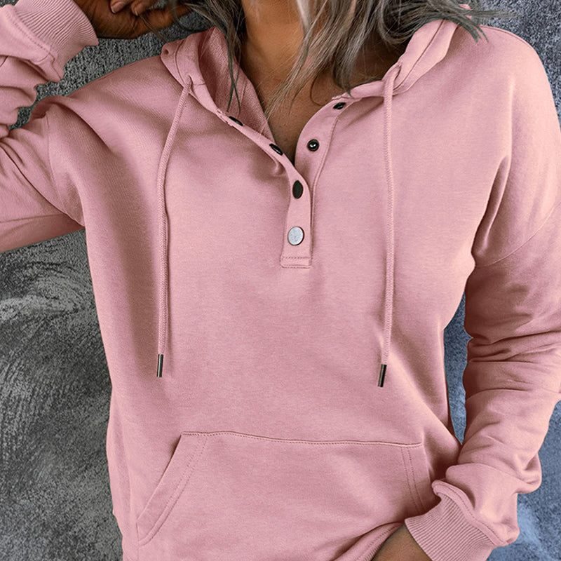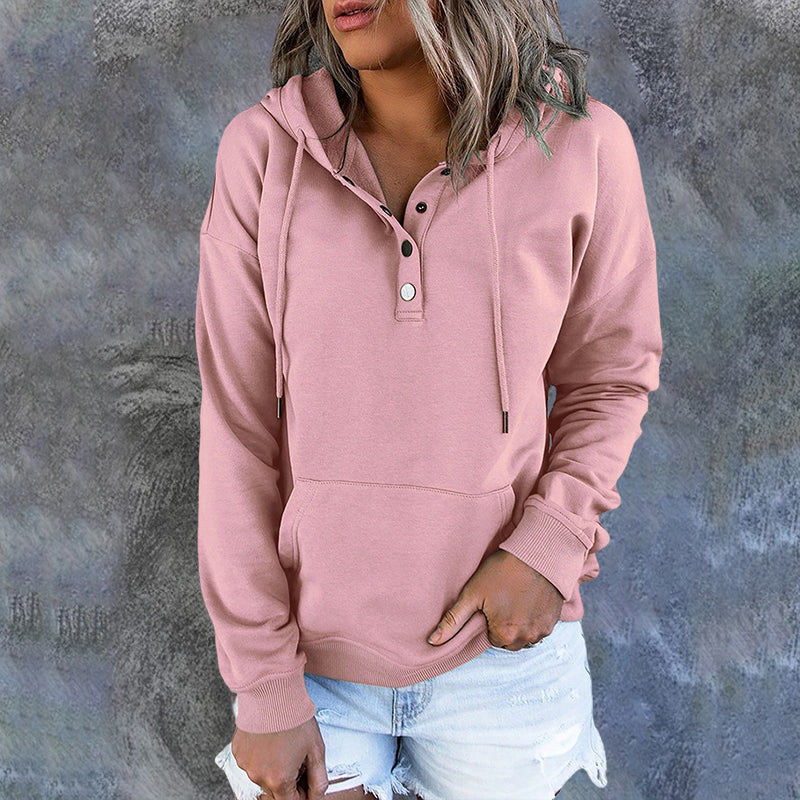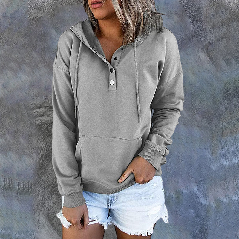 Das Langarm-Pullover mit Knopfkragen und Kordelzug ist angenehm zu tragen. Modische einfarbige Kapuzen-Sweatshirts sind aus hochwertigem Stoff gefertigt, atmungsaktiv, leicht, weich und hautfreundlich. Sie können diese einfarbigen Hoodies mit Knöpfen der neuesten Mode mit Jeans, Jeansshorts, Leggings, Turnschuhen oder Absätzen kombinieren, um einen lässigen Look zu vervollständigen.