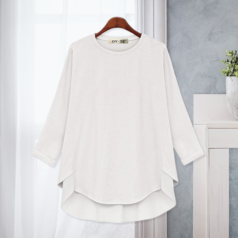 • 1 * T-Shirt mit Rundhalsausschnitt und unregelmäßigem Saum